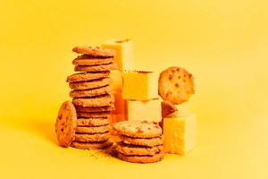 GLUTEENIVABA Koostisosad: gluteenivaba jahusegu (maisitärklis, riisijahu, taimsed kiud (teeleht, bambus), täisterariisijahu, läätsejahu, dekstroos, paksendaja hüdroksüpropüülmetüültselluloos, sool), Cheddari juust (23%) (piim, tärklis, sool, laap, piimhappebakterid, toiduvärv annaato), taimeõli (kookosõli, rapsiõli), munad, hernevalk, tapiokitärklis, antioksüdant: rosmariiniekstrakt, teelehe seemnekestapulber, looduslik juustu lõhna- ja maitseaine, tšillipipar, sool. Toiteväärtus 100 g kohta: Energiasisaldus 2270 kJ / 546 kcal, rasvad 37,4 g, millest küllastunud rasvhapped 23,6 g, süsivesikud 33,8 g, millest suhkrud 1,7 g, kiudained 3,3 g, valgud 16,9 g, sool 1,4 g Iga toode on välja töötatud spetsiifilisi toitumisvajadusi silmas pidades, et see oleks hea nii kehale kui vaimule.