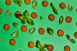 GLUTEENIVABA! Koostisosad: gluteenivaba jahusegu (maisitärklis, riisijahu, taimsed kiud (teeleht, bambus), täisterariisijahu, läätsejahu, dekstroos, paksendaja E464, sool), juust (23 %) (piim, juuretis, paakumisvastane aine: kaltsiumkloriid), taimsed õlid (kookos-, rapsiõli), munad, hernevalk, tapiokitärklis, tomati-basiiliku maitseainesegu (1,6 %) (tomatid 26 %, basiilik 8 %, maitseained, maltodekstriin, paprikaekstrakt), teelehe seemnekestapulber, antioksüdant: rosmariiniekstrakt, tomatipulber (0,9 %), juustu lõhna- ja maitseaine, teravamaitseline paprikapulber, kuivatatud basiilik (0,2 %), sool. Toiteväärtus 100 g kohta: energiasisaldus 2367 kJ / 568 kcal, rasvad 37,2 g, millest küllastunud rasvhapped 22,7 g, süsivesikud 38,2 g, millest suhkrud 2,5 g, kiudained 3,9 g, valgud 18,4 g, sool 2,1 g. Iga toode on välja töötatud spetsiifilisi toitumisvajadusi silmas pidades, et see oleks hea nii kehale kui vaimule.